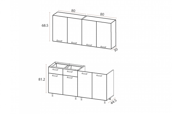 Высота верхних шкафов: 685 мм